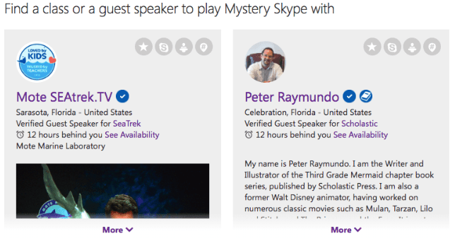 Another useful tool from Skype in the Classroom is the Connect with Experts tool where you can find guests speakers, Skype lessons, or join a virtual field trip. When looking for guest speakers, you can filter by age group, subject, availability, country/region and/or language. When looking for Skype lessons or virtual field trips, you can search by subject, age group and location. This platform provides how-to starter guides and even mini-courses that you can take to make the most of these experiences. As I mentioned at the start of this post, Skype in the Classroom is truly an amazing tool that makes it extremely easy to connect your classroom to the world.