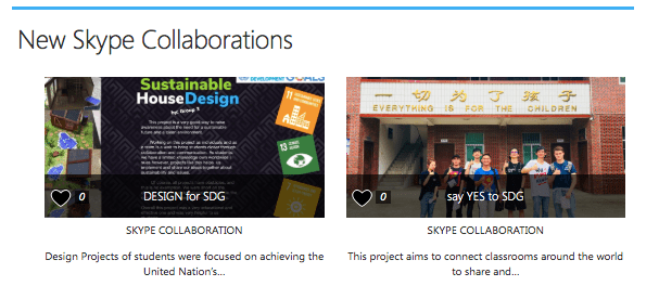 Another resource from Skype in the Classroom is Skype Collaborations which lets you create a project and post it on their platform. In this way, other classes can find you and work with you. You can also use their database to search for other projects to join. There are featured projects in various categories such as Geography & Culture, Empathy & Compassion, SDGs related projects, amongst many others. You can filter projects by age group, subject, content, country or region, skills development and/or language.